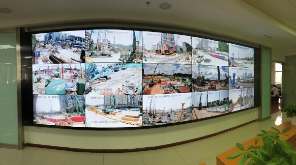 現在,上海遠方積極建設遠程信息交互系統,讓公司后臺“云監工”不再是夢。自2020年6月1日起,公司所有在建項目實現了視頻監控全覆蓋。施工現場攝像頭直接云連接公司總部后臺顯示屏。公司總部后臺借助高清液晶拼接顯示屏實時督查前線施工動態。