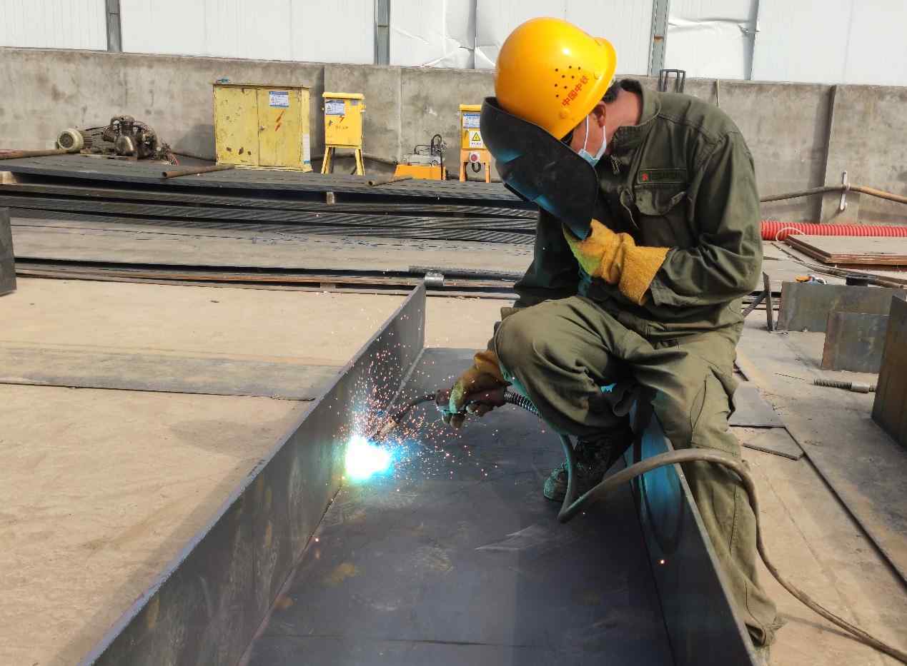 為保證10月14日的開工能夠按時舉行,工字鋼型鋼加工班班長親自拿著焊槍,沉著冷靜地按照設計要求及施工規范加工制作符合標準的型鋼。在火花四射中行云流水,似信手拈來般加工出焊縫飽滿、線條平直、品質優秀的型鋼成品。