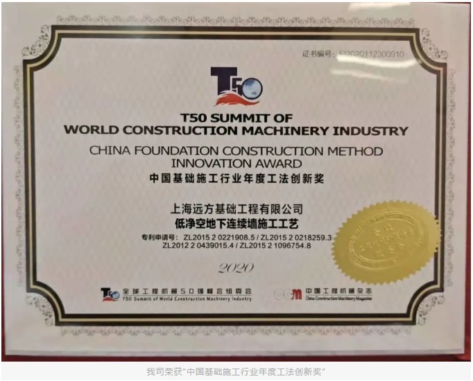此次會上,我司不僅斬獲了“2020中國基礎施工10強”的榮譽稱號,我司低凈空地下連續(xù)墻施工工藝還獲得了“中國基礎施工行業(yè)年度工法創(chuàng)新獎”。遠方始終堅持精進創(chuàng)新,共有專利40余項和多項應對特殊工況的創(chuàng)新工法。創(chuàng)新驅動發(fā)展,我司致力于建設成創(chuàng)新型施工企業(yè)。通過創(chuàng)新我司不斷提高施工效率,降低工程資源浪費,提升對客戶的服務水平。為增強公司自主創(chuàng)新的能力,我司采取培訓、競賽等多樣形式激勵員工創(chuàng)新施工的熱情,刺激內(nèi)部創(chuàng)新活力。今年,我司就舉行了兩次大型工藝策劃評比活動,獲獎員工贏得了豐厚的獎金,獲獎作品在公司內(nèi)部展示、學習。精進創(chuàng)新,使我們穩(wěn)居行業(yè)前端,使我們在施工建設的道路上行穩(wěn)致遠。